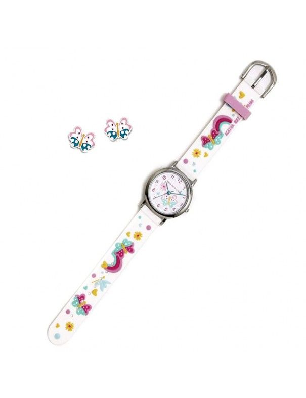 Conjunto Reloj y Pendientes Agatha Ruiz AGR298, reloj y pendientes de plata con motivos de mariposas.
