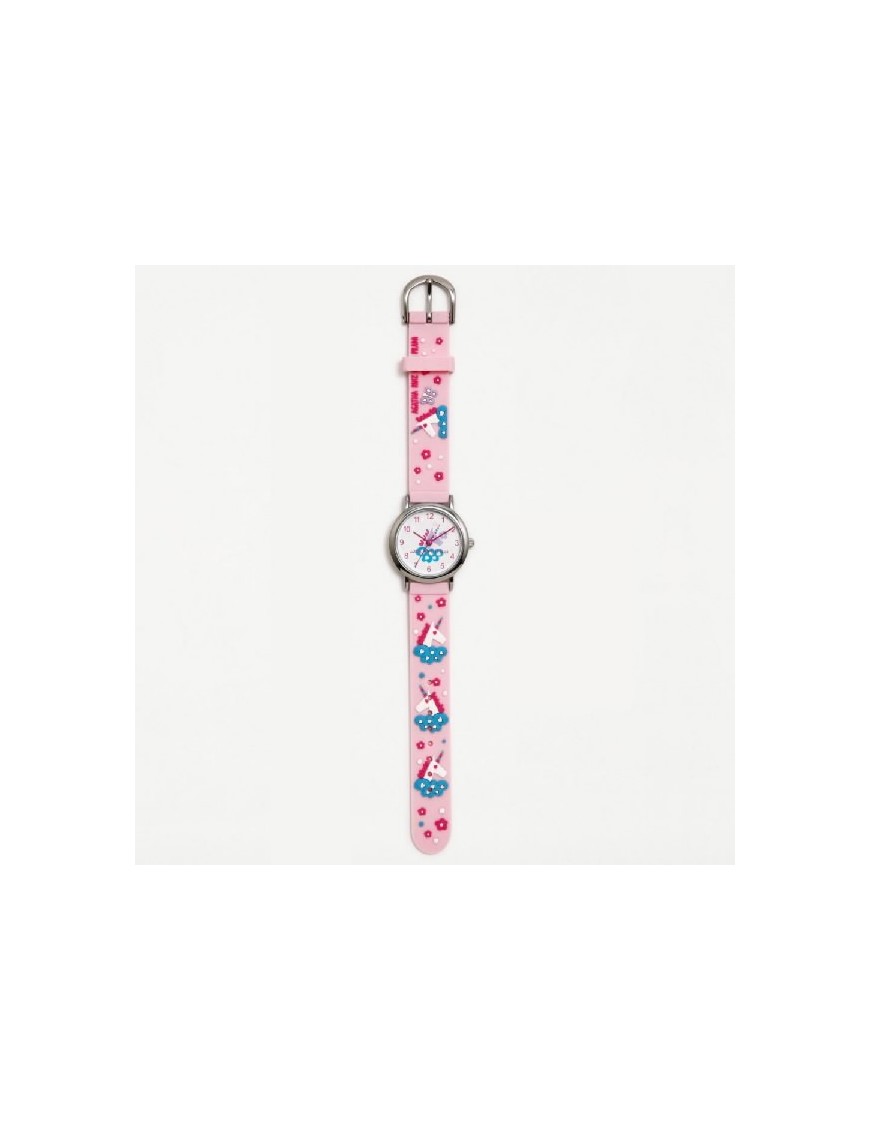 Reloj Agatha Ruiz de la Prada unicornio AGR292R para niñas. La pulsera es de plástico y la esfera mide 22 mm de diámetro.