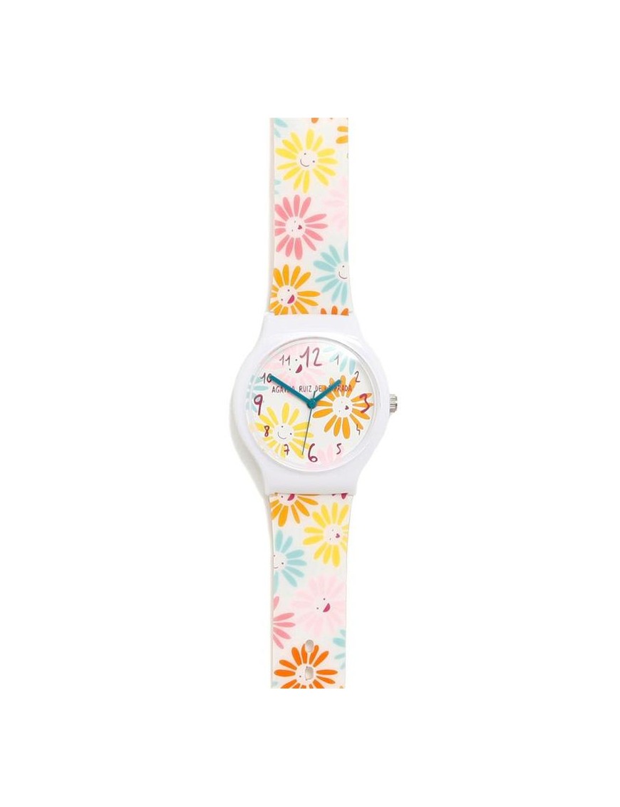 Reloj Agatha Ruiz de la Prada margarita AGR320 para niñas. La pulsera es de plástico y la esfera mide 36 mm de diámetro.