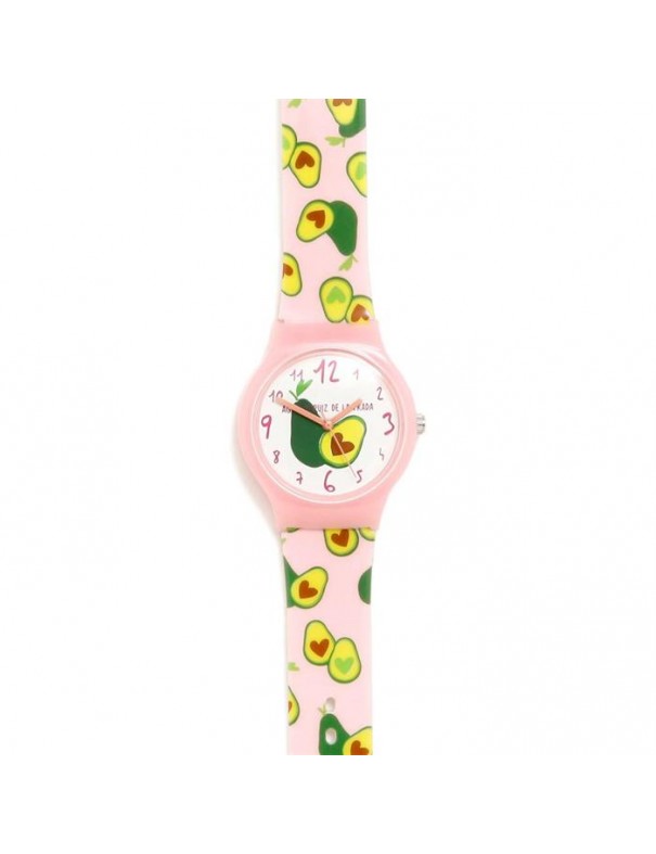 Reloj Agatha Ruiz de la Prada aguacates AGR329 para niñas. La esfera tiene un diámetro de 36 mm. La pulsera es de plástico y tiene cierre de hebilla. Garantía de tres años.