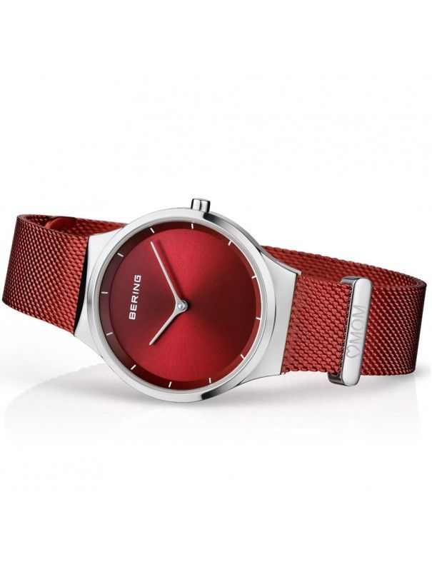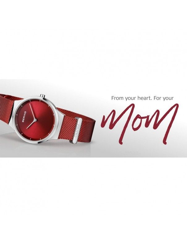 Reloj Bering Mujer Classic plata 10126-309. Es un reloj Bering, para mujer. Es un modelo analógico de la colección Classic, realizado en acero antialérgico con esfera roja. Edición especial día de la madre. Grabación de corazón y Mom en la hebilla.