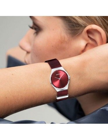 Un cristal de zafiro se encarga de proteger a la esfera, la cual es redonda y de color roja. Los marcadores horarios son índices plateados. Somos distribuidores oficiales de los relojes Bering que ofrecen una garantía de 2 años contra defectos de fabricación. Todos nuestros productos se envían con envoltorio de regalo y en sus cajas originales.