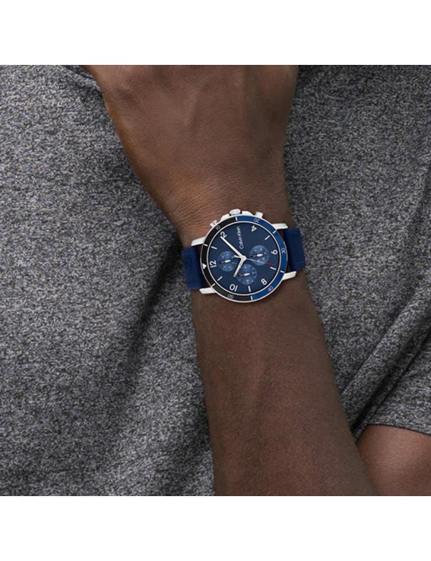 Reloj Calvin Klein Gauge Sport Hombre Multifunción 25200071. Caja de acero de 45 mm de diámetro con esfera en color azul con 6 agujas y calendario bajo un cristal mineral. La correa de silicona en de color azul con cierre de hebilla. Sumergible hasta 50 m. Garantía de 3 años.