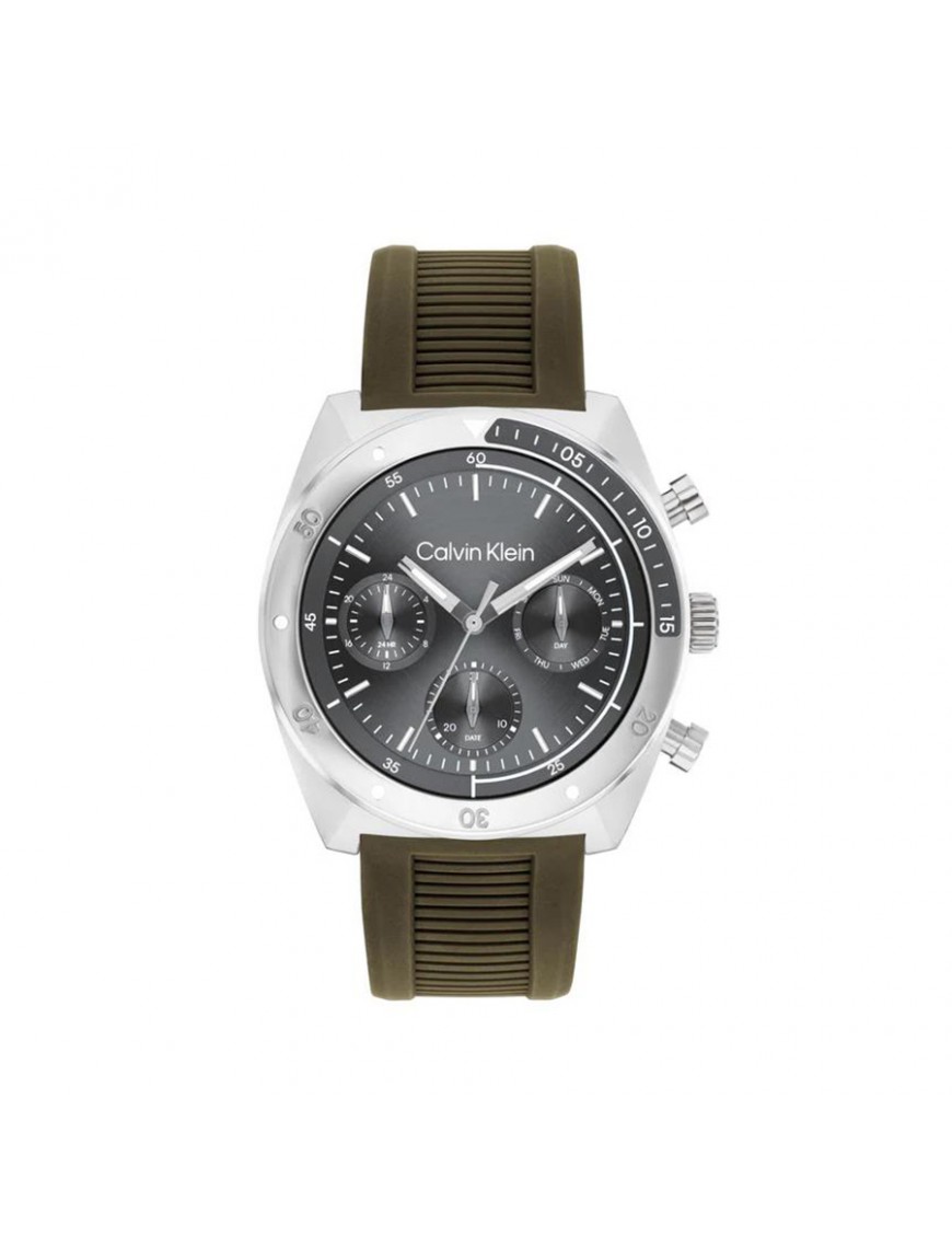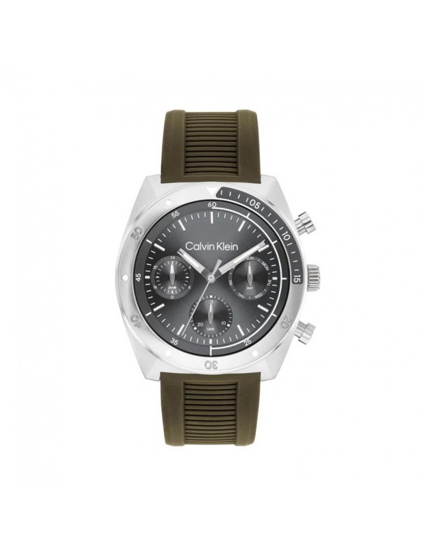 Reloj Calvin Klein Flex 25200469. Caja de acero de 42mm de diámetro con esfera en color gris bajo cristal mineral. La correa es de silicona en color marrón con cierre de hebilla. Sumergible hasta 5 ATM. Garantía de 3 años.