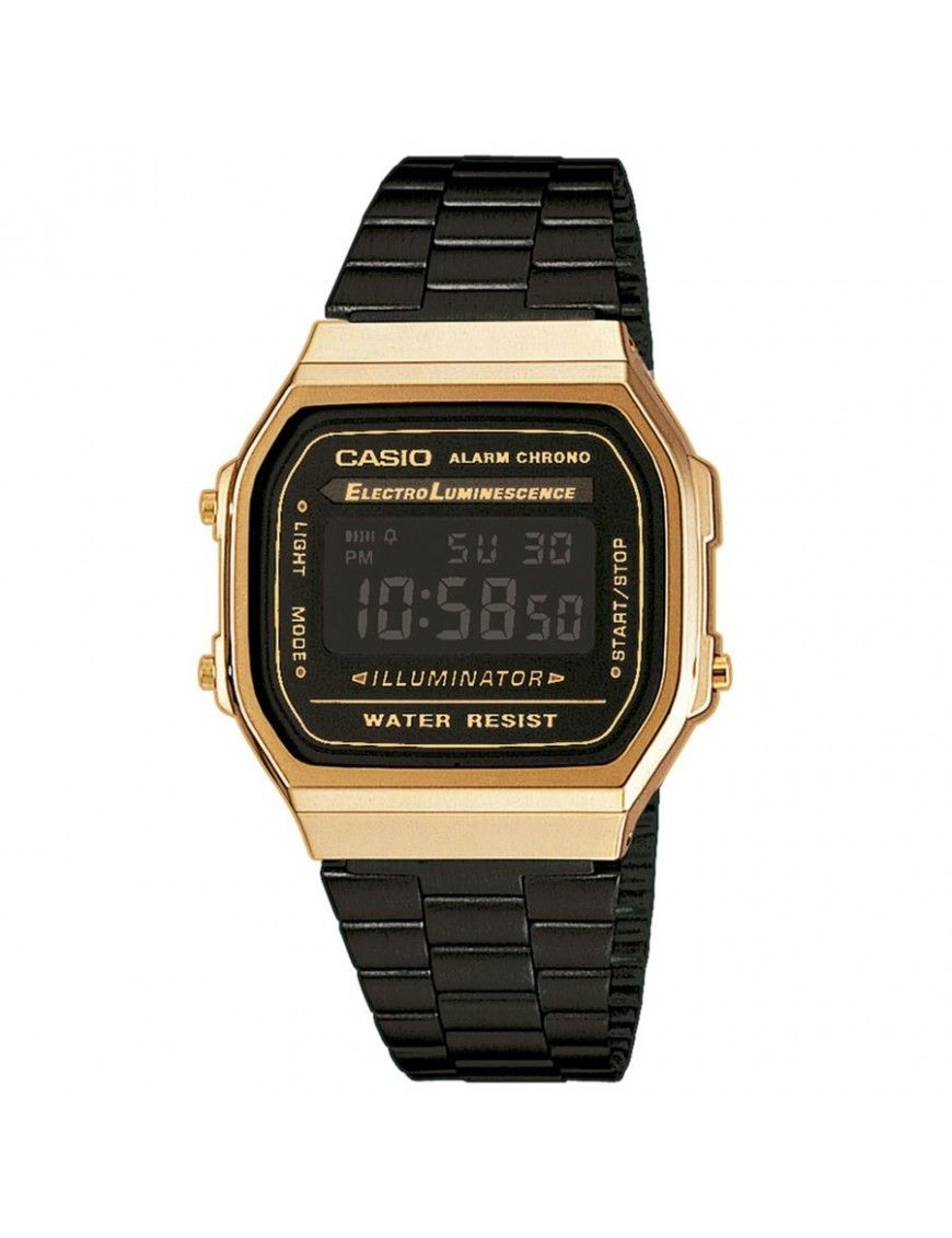 Reloj Casio Unisex A168WEGB-1BEF. Consiste en un reloj original de la marca Casio, para hombre o mujer, es unisex, y pertenece a la línea Casio Collection. Es un modelo digital con movimiento de cuarzo alimentado con pila de botón.