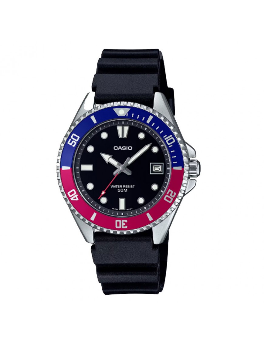 Reloj Casio para hombre MDV-10-1A2VEF. La esfera es de acero y aluminio y mide 39 mm de diámetro. La pulsera es de resina de origen biológico con hebilla. Incluye calendario. Es sumergible a 5 ATM y permite el nado en superficie sin inmersión. Garantía de tres años.