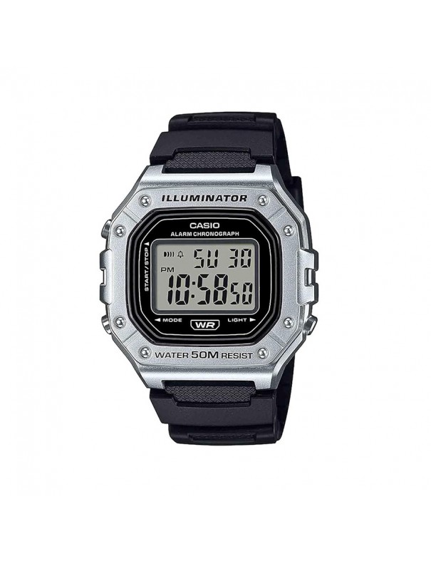 Reloj Casio Timeless Collection W-218HM-7AVEF. Diseño deportivo diseñado con resina para hacerlo resistente ante los golpes. Incluye iluminación con luz LED de color ámbar. Tiene funciones de cronómetro y alarma. Sumergible hasta 5 bares. Garantía de 3 años.
