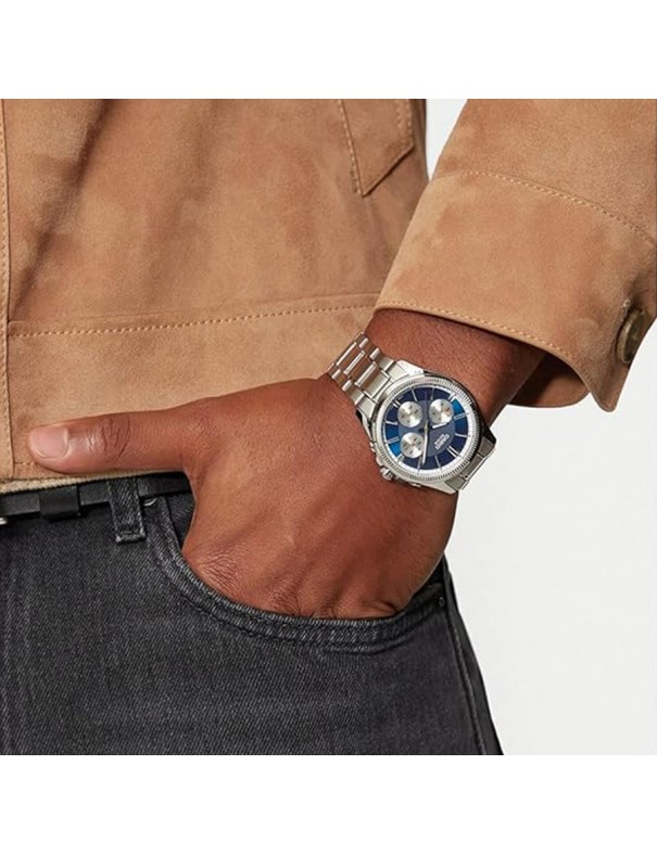 Reloj Casio Timeless Collection MTP-1375PD-2A1VEF. Carcasa y bisel fabricados con material ionizado. La esfera en de color azul y cuenta con seis agujas. La correa es de acero y tiene cierre de triple pliegue. Sumergible hasta 5 bares. Garantía de 3 años.
