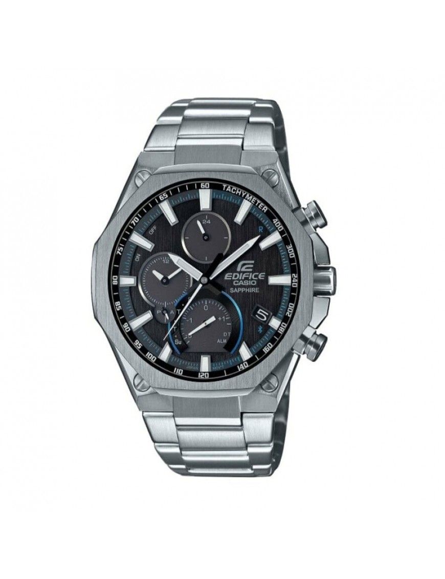 Reloj Casio Edifice Hombre EQB-1100D-1AER, reloj analógico cronógrafo. Esfera de 44mm de diámetro compuesta por 3 agujas e indicadores luminiscentes, 3 mini esferas y ventana de calendario. Pulsera de acero y cristal de zafiro. Recoge la energía solar y la almacena en una batería. Dispone de una tecnología Bluethoot de bajo consumo que permite intercambiar datos . Se conecta con el smartphone de forma inalámbrica ofreciendo el acceso a numerosas funciones útiles (Alarma, Lap Memory...). Sumergible a 10ATM, por lo que es apto para ducha y baño sin inmersión. Garantía de dos años contra defectos de fabricación.