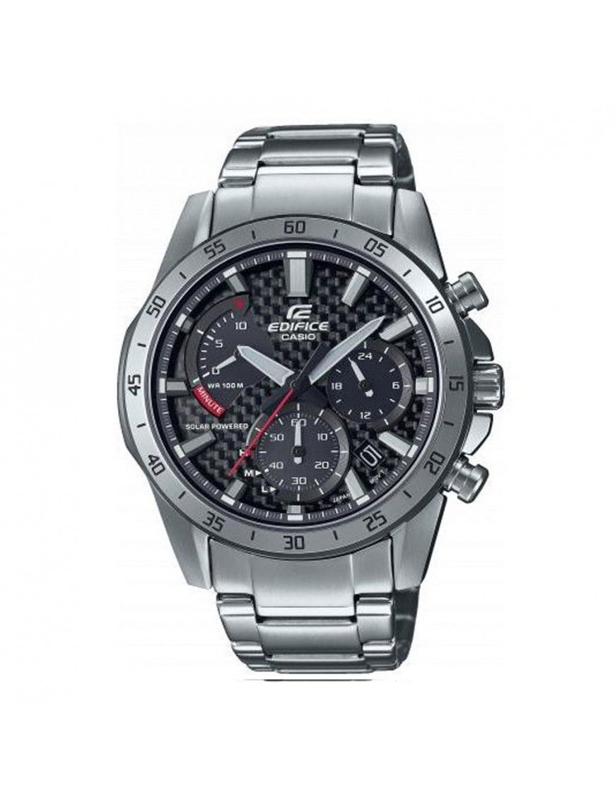 Reloj Casio Edifice Hombre EFS-S580D-1AVUEF, cronógrafo con ventana de calendario. Esfera de 46mm de diámetro. Dial de fibra de carbono. Solar Powered, recoge la energía solar, almacenando la sobrante en una batería. Pulsera de acero. Cristal de zafiro. Sumergible a 10ATM, por lo que es apto para ducha y baño con inmersión.