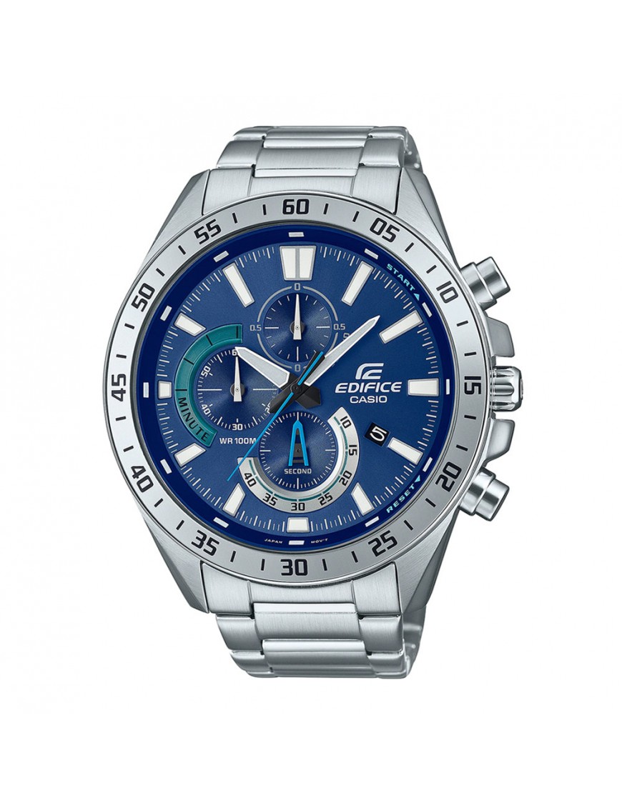 Reloj Casio Edifice EFV-620D-2AVUEF, analógico cronógrafo. Caja de acero de 51mm de diámetro. Agujas e indicadores luminiscentes. Ventana de calendario. Pulsera de acero y cierre de seguridad. Cristal mineral. Sumergible a 10ATM, por lo que es apto para ducha y baño con inmersión.