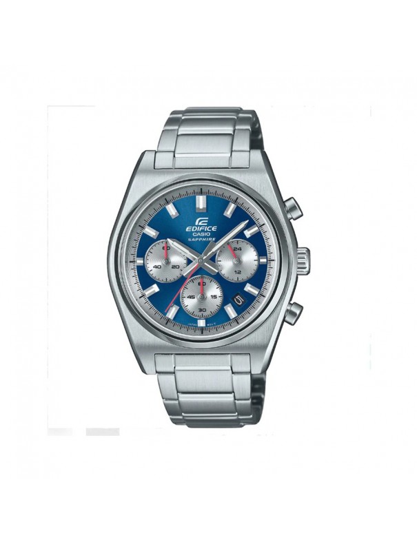 Reloj Edifice Cronógrafo Estandar EFB-730D-2AVUEF. Caja de acero con esfera en color azul con 6 agujas cubierta por un resistente cristal de zafiro. La correa es de acero y tiene cierre de triple pliegue. Tiene función de cronógrafo. Sumergible hasta 10 bares. Garantía de 3 años.