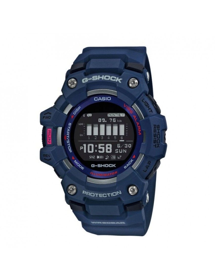Reloj Casio Smart G-Shock Hombre GBD-100-2ER, reloj digital. Esfera de 50mm. Correa de caucho y cristal mineral. Dispone de calendario automático, hora universal, 4 alarmas, cronómetro, consumo de calorías, memoria de vuelta, planificación y análisis de entrenamiento, contador de pasos, sensor de aceleración, alarma con vibración y luz led. Dispone de una tecnología Bluetooth que permite intercambiar datos con un Smartphone a través de conexión inalámbrica. Sumergible a 20ATM, por lo que es apto para baño con inmersión (inmersión con botella). Garantía de dos años contra defectos de fabricación.