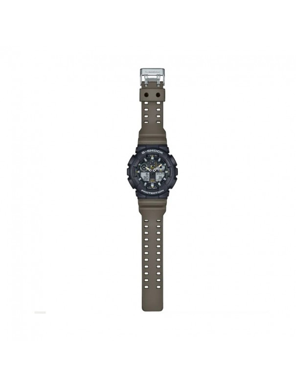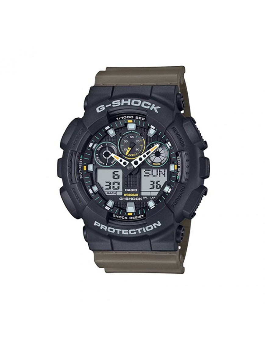 Reloj G-Shock GA-100TU-1A3ER. Carcasa y bisel fabricados con resina lo que lo hace resistente a golpes. Cuenta con un estilo moderno en el que combina la función analógica y digital. La correa es de resina con cierre de hebilla. Sumergible hasta 20 bares. Garantía de 3 años.