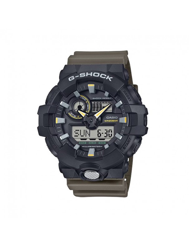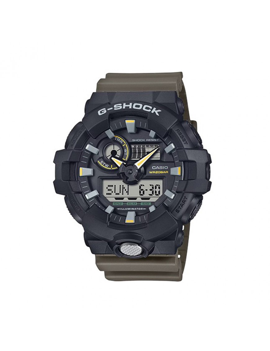 Reloj G-Shock GA-710TU-1A3ER. Carcasa y bisel fabricados con resina lo que lo hace resistente a golpes. Cuenta con un estilo moderno en el que combina la función analógica y digital. La correa es de resina con cierre de hebilla. Sumergible hasta 20 bares. Garantía de 3 años.
