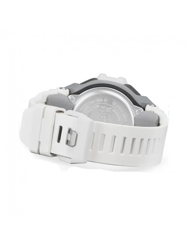 Reloj G-Shock GBD-300-7ER. La carcasa, bisel y la correa están fabricado con resina biológica lo que le hace resistente a posibles golpes. El cierre es de hebilla. Incluye funciones de entrenamiento, visualización de distancia, velocidad y otros valores; tiempos de vuelta, pausa automática, configuración de alerta de objetivo y personalización de la pantalla de entrenamiento.