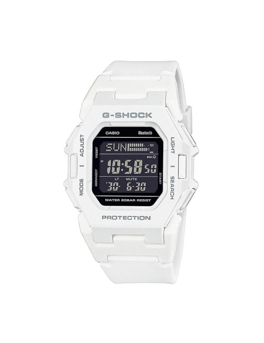 Reloj Casio G-shock GD-B500-7ER. Fabricado en resina para hacerlo resistente a golpes. La caja mide 46,3mm de diámetro. Está equipado con bluetooth y contador de pasos además de funciones de cronómetro, temporizador, alarma, iluminación y calendario. Sumergible hasta 20 bares. Garantía de 3 años.