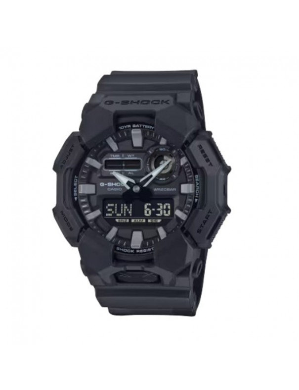 Reloj G-SHOCK GA-010-1A1ER. Combina resistencia y sostenibilidad con una caja grande fabricada en resina de base biológica y estructura Carbon Core Guard. Su batería de 10 años de duración permite un uso prolongado sin preocupaciones. Ofrece funciones prácticas como hora mundial, cronómetro y luz LED de alto brillo con acceso rápido mediante botón frontal. Su diseño robusto y versátil se adapta tanto al uso diario como a entornos laborales. Resistente hasta 20 bares. Garantía de 3 años.