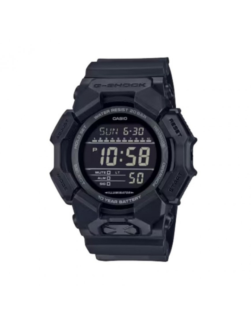 Reloj Casio G-SHOCK GA-010-1AER. Caja sólida de gran tamaño fabricada en resina de base biológica, con estructura Carbon Core Guard para mayor resistencia. Su diseño totalmente negro es versátil y sobrio, ideal para cualquier entorno. Ofrece pantalla digital grande, hora mundial, cronómetro y luz LED de alto brillo con botón frontal. Su batería de 10 años garantiza un uso prolongado sin mantenimiento frecuente. Sumergible hasta 20 bares. Garantía de 3 años.