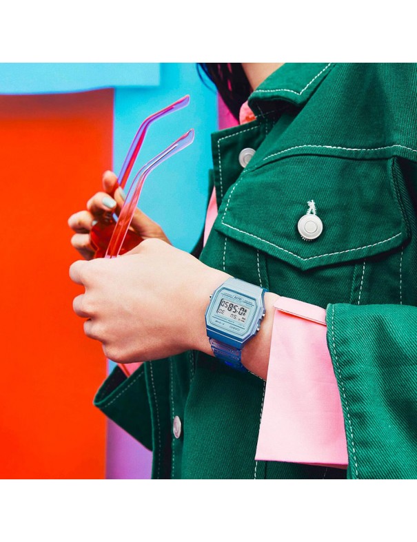Reloj Casio Retro Unisex F-91WS-2EF. La caja es de resina y mide 35 mm de ancho. La pulsera es de resina con hebilla. Incluye Cronómetro, alarma, calendario, luz led y modo 12/24 horas. No es sumergible (3ATM) y tiene tres años de garantía.