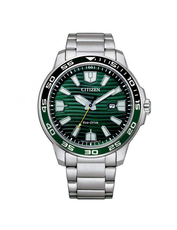 Reloj Citizen Eco Drive Hombre AW1526-89X, analógico con ventana de calendario. Caja de 45mm de diámetro. Pulsera de acero. Cristal mineral. Sumergible a 10ATM, por lo que es apto para ducha y baño con inmersión. No necesita pila. Sistema Eco Drive con reserva de carga de 8 meses. Recoge la luz natural y artificial, convirtiéndola en energía y acumulando la sobrante.