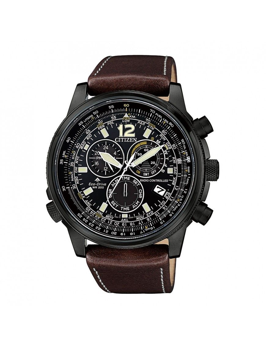 Reloj Citizen Eco Drive Radiocontrolado Crono Hombre CB5865-15E, analógico cronógrafo. Caja de 43mm de diámetro. Pulsera de piel. Cristal de zafiro.