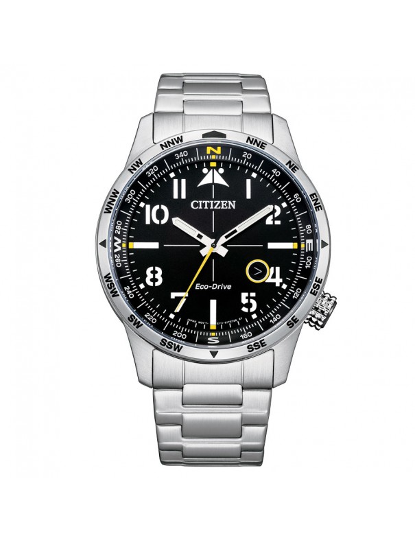 Reloj Citizen Eco-Drive para hombre BM7550-87E. La esfera es de acero y mide 43 mm de diámetro. La pulsera es del mismo material y lleva doble pulsador. Incluye sistema Eco-Drive de alimentación solar y calendario. Es sumergible a 10 ATM y permite el buceo sin botella. Garantía de tres años.