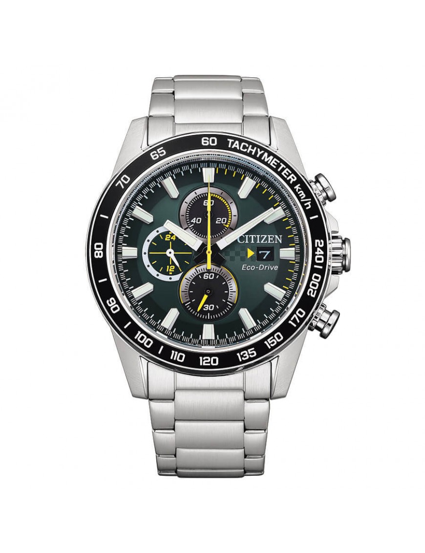 Reloj Citizen Eco-Drive crono para hombre CA0780-87X. La esfera es de acero y mide 44 mm de diámetro. La pulsera es del mismo material con cierre de seguridad. Incluye sistema Eco-Drive de alimentación solar, cronógrafo, taquímetro y calendario. Es sumergible a 10 ATM por lo que permite el buceo sin botella. Garantía de tres años.