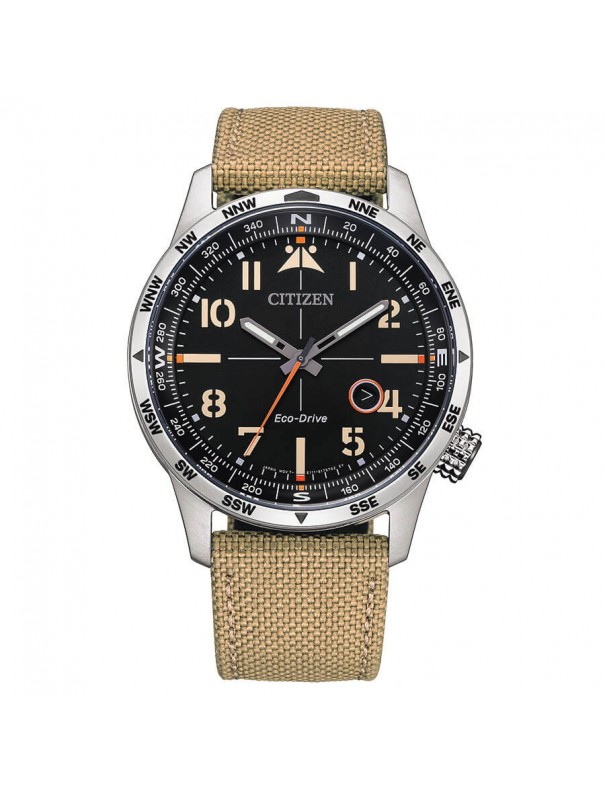 Reloj Citizen Eco-Drive para hombre BM7550-10E. La esfera es de acero y mide 43 mm de diámetro. La pulsera es de nylon. Incluye calendario. Es sumergible a 10 ATM por lo que permite el buceo sin botella. Garantía e tres años.