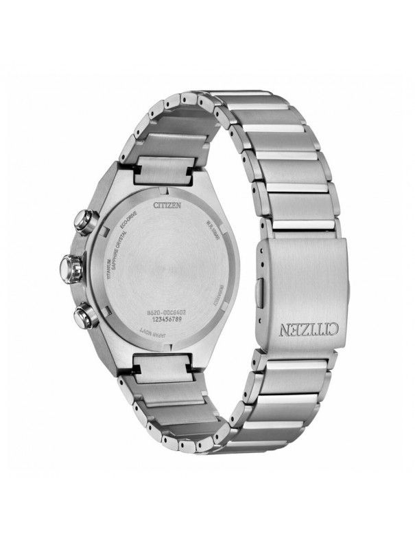 Reloj Citizen Chrono Super Titanium Zenshin Senkei CA4691-59L. La caja mide 41 mm de diámetro y es de super Titanium. La pulsera es del mismo material con cierre de doble pulsador. Incluye movimiento EcoDrive B620 con reserva de carga de 9 meses. Lleva calendario y cristal zafiro que no se raya.