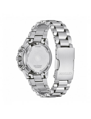 Reloj Citizen Eco Drive Chrono CA4660-61A. Fabricado en acero inoxidable con esfera blanca y cristal de zafiro antirreflejos. Funciona con tecnología Eco Drive con reserva de 9 meses e incluye cronógrafo, calendario y bisel giratorio con regla de cálculo. Resiste al agua hasta 20 bar (200 metros) y es resistente a campos magnéticos. Cuenta con garantía de 3 años.
