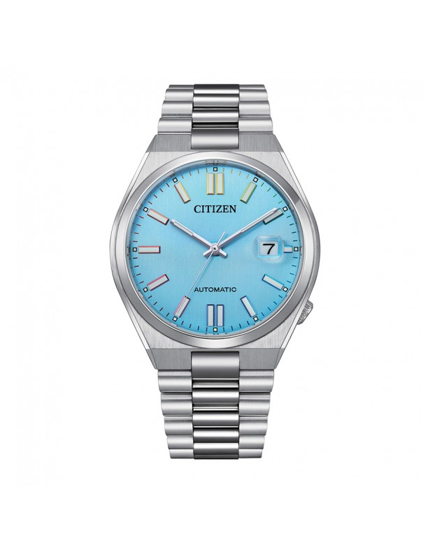 Reloj Citizen Tsuyosa Special Edition NJ0151-53L. Fabricado en acero inoxidable con cristal de zafiro y esfera turquesa. Ofrece funciones de calendario con lupa y sistema automático de carga con reserva de marcha de 40 horas. Cuenta con luminiscencia en agujas e índices para mejor visibilidad.