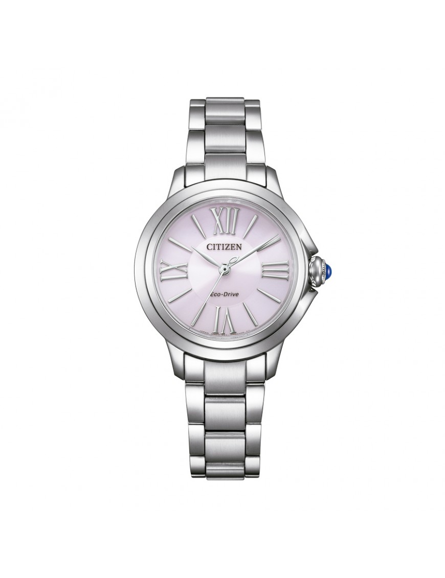 Reloj CITIZEN Lady EM1160-58X. Caja de acero inoxidable en color plata, esfera rosa y brazalete de acero inoxidable con cierre desplegable oculto. Movimiento Eco-Drive con reserva de marcha de hasta 6 meses, funciones de horas-minutos-segundos. Sumergible hasta 5 bar.