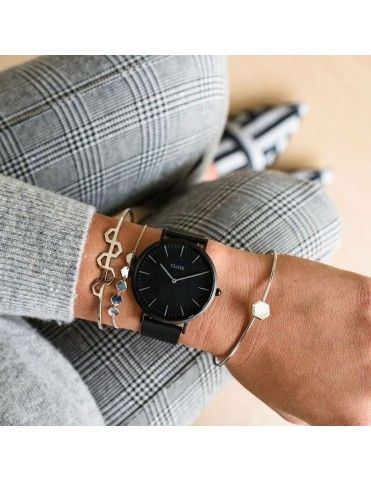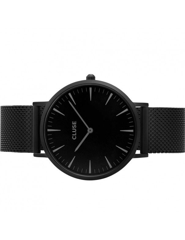 Reloj Cluse La Bohème Mujer CW0101201005 analógico de dos agujas con movimiento de cuarzo. La caja que encierra al mecanismo mide de diámetro 38 milímetros y es sumergible a 30 metros. Está realizada en acero hipoalergénico, terminada en color negro.