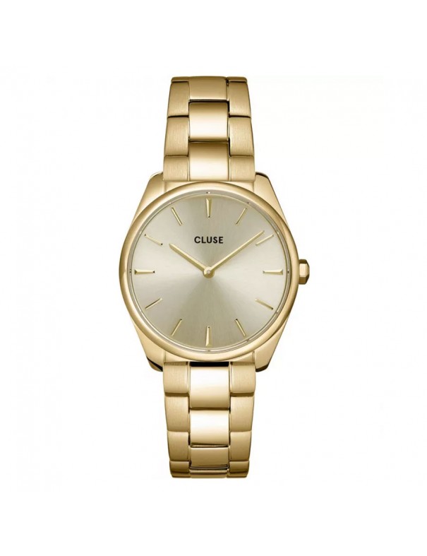 Reloj Cluse Petite para mujer CW11212. La esfera es de acero y mide 32 mm de diámetro. La pulsera es del mismo material con cierre de seguridad. Es sumergible a 5 ATM y permite el nado en superficie sin inmersión. Garantía de tres años.