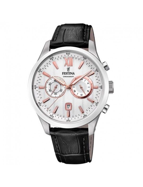Reloj Festina Hombre cronógrafo F16996/1. Es un reloj Festina para hombre, analógico cronógrafo, con calendario, hecho en acero hipoalergénico y cuero negro.
