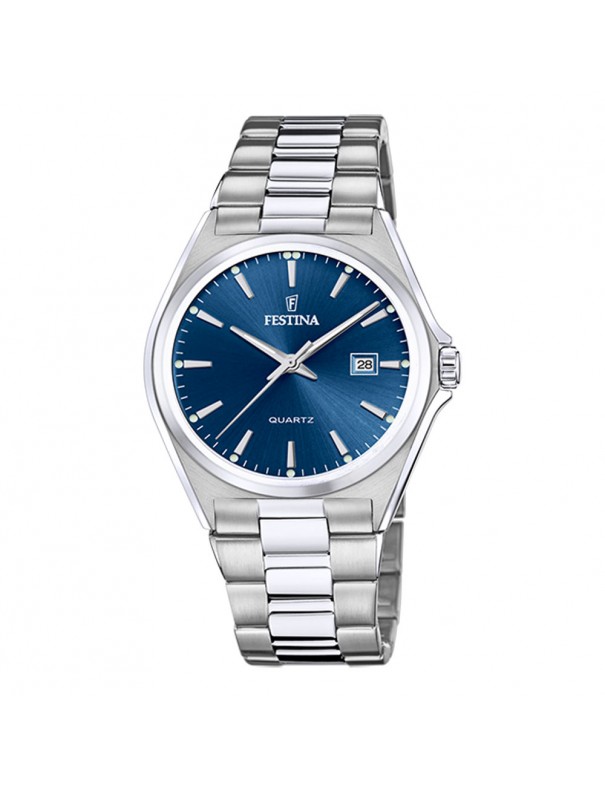 Reloj Festina Hombre F20552/3, analógico de tres agujas. Caja de acero de 40mm de diámetro. Agujas luminiscentes. Ventana de calendario. Cristal mineral. Pulsera de acero. Sumergible a 5ATM, por lo que es apto para ducha y baño sin inmersión.