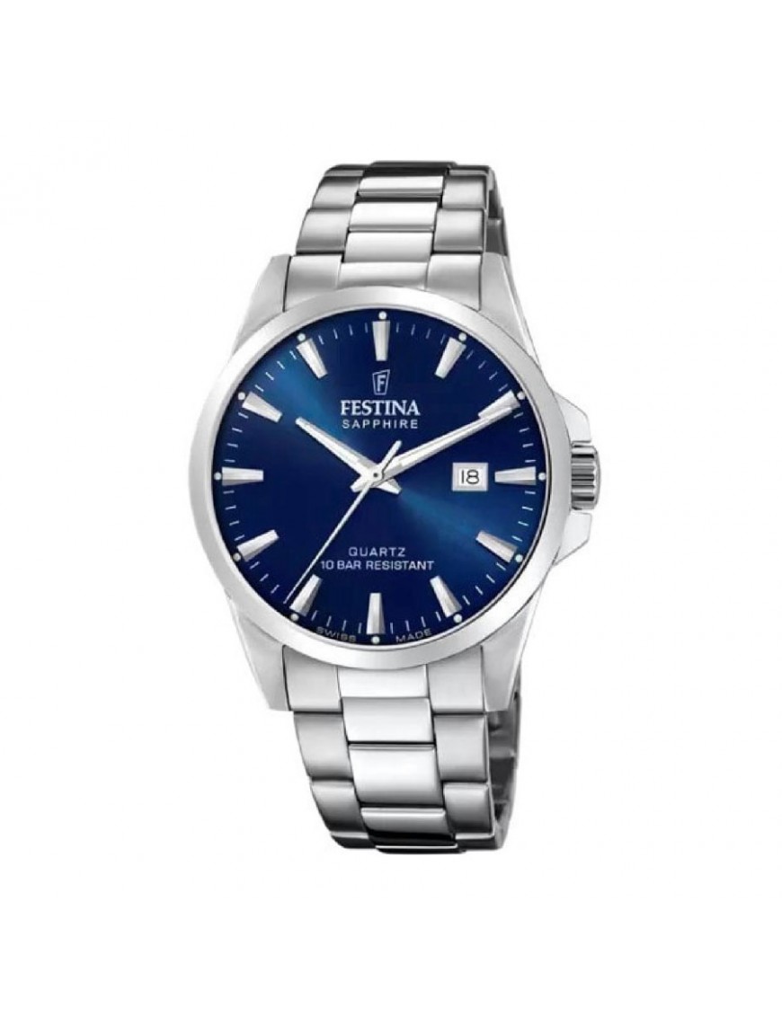 Reloj Festina Swiss Made para hombre F20024/3. La esfera es de acero con cristal zafiro y mide 41 mm de diámetro. El mecanismo es suizo y lleva calendario. Pulsea de acero con cierre desplegable de seguridad. Es sumergible a 10 ATM y tiene garantía de tres años.