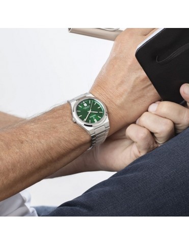 Reloj Festina Swiss de Hombre F20051/5 de acero. Con una esfera de zafiro verde y con tres agujas, diámetro total de 40 mm. Correa de acero con cierre oculto. Marca horas, minutos y segundos junto a la fecha. Sumergible a 10 ATM. Garantía de tres años.