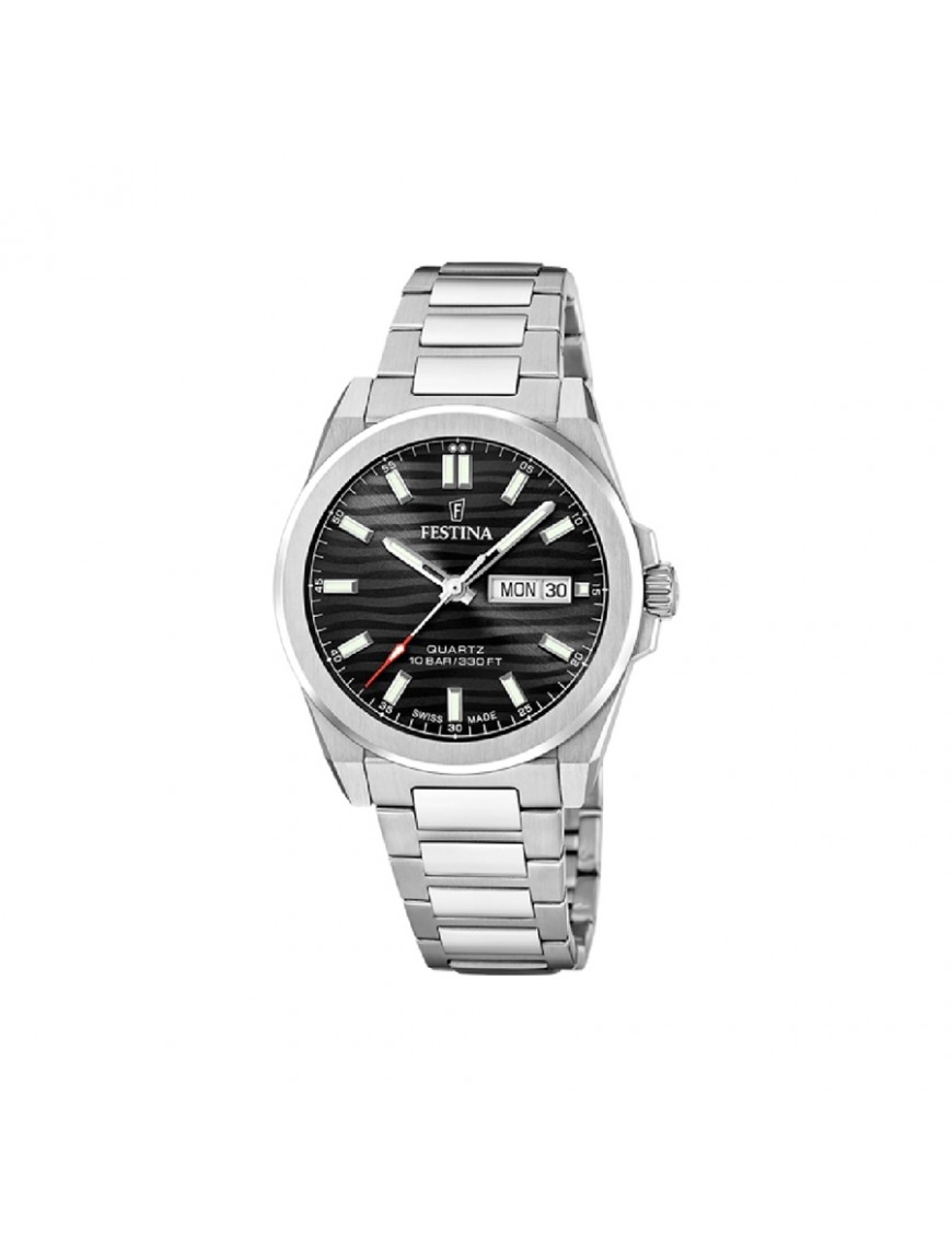 Reloj Festina Swiss Classics Negro Hombre F20073/5. Caja de acero de 40mm de diámetro con cristal de zafiro y esfera negra. La correa es de acero inoxidable y tiene cierre desplegable. Incluye calendario. Sumergible hasta 10 bares. Garantía de 3 años.