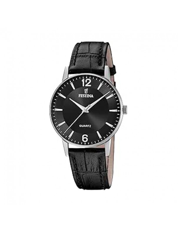 Reloj Festina Negro Hombre F20690/4. Caja de acero de 36 mm de diámetro con esfera en color negro bajo un cristal mineral. La correa es de piel y cuenta con cierre de hebilla. Estanqueidad de 3 ATM. Garantía de 3 años.