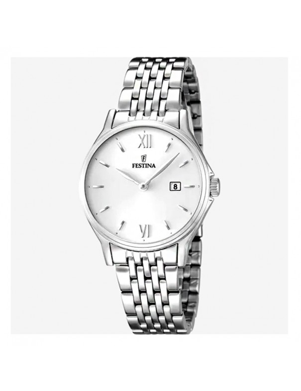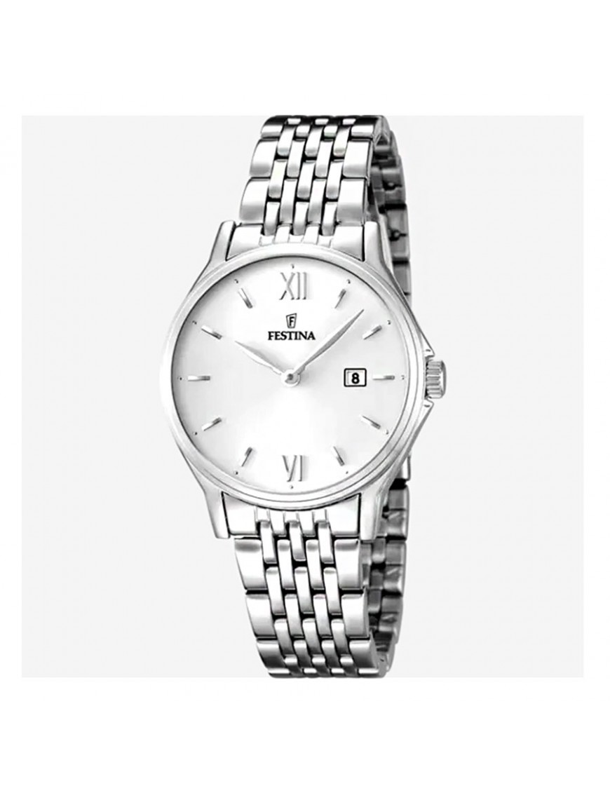 Reloj Festina para mujer F16748/2. La esfera es de acero y mide 31 mm de diámetro. La pulsera es del mismo material con cierre de seguridad. Incluye calendario. Es sumergible a 5 ATM por lo que permite el nado en superficie sin inmersión. Garantía de tres años.
