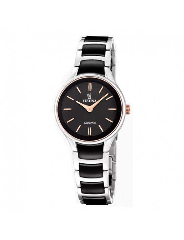 Reloj Festina Ceramic Negro F20752/7. Combina diseño sofisticado con materiales duraderos, destacando su brazalete de cerámica en color negro y caja plateada para un estilo refinado y actual. Su movimiento de cuarzo analógico ofrece precisión y fiabilidad en el uso diario, con una esfera negra con índices en color rosado que aporta elegancia y feminidad al conjunto. Una pieza femenina que une tendencia, calidad y durabilidad. Resistente al agua de 5 ATM. Garantía de 3 años.