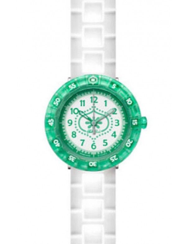 Reloj Flik Flak para niña, modelo FCSP013. Este reloj analógico, con movimiento de cuarzo, tiene correa, cierre y caja de poliuretano. Las dimensiones de la caja son de 36,7 mm. Sumergible a 3 atm. Su garantía es de 2 años. Se envía junto con un envoltorio para regalo.