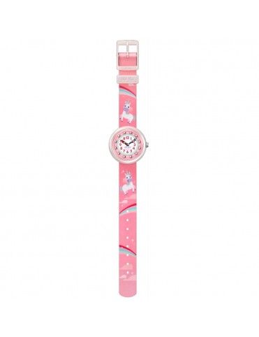 Reloj Flik Flak Magical Dream FBNP121 unicornios rosa. Es un divertido reloj analógico con tres agujas. Tiene maquinaria de cuarzo. La correa es de material textil lavable y de gran resistencia en tonos rosas con la imagen fantásticos unicornios de color rosa. ¿Quién no ha soñado en tener un unicornio en su habitación?, ahora te acompañará siempre en tu muñeca.
