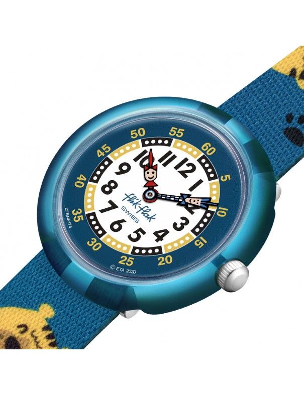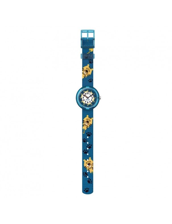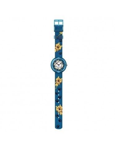 Reloj Flik Flak NIño Pawsome FBNP175, analógico sin segundero. Esfera de plástico de 30mm de diámetro. Pulsera de material textil. Sumergible a 3ATM, por lo que sólo soporta pequeñas salpicaduras.