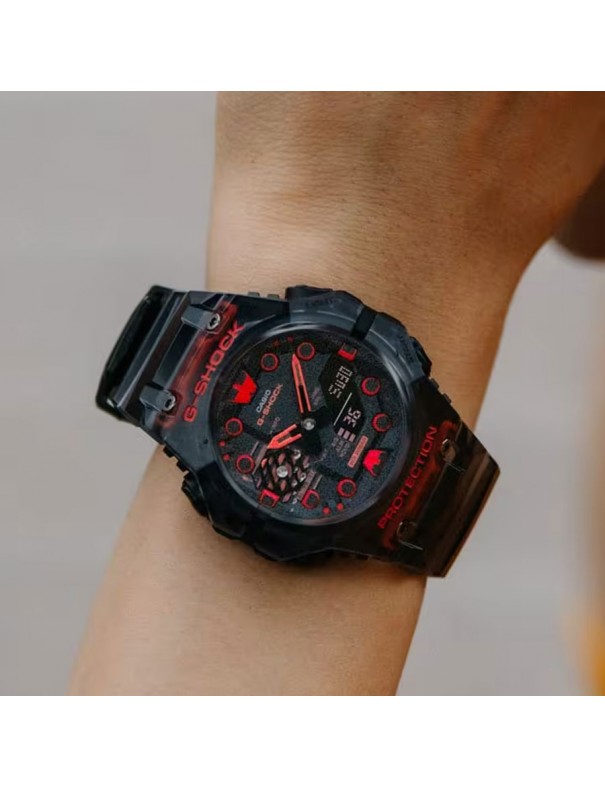 Reloj Casio G-Shock GA-B001G-1AER para hombre. La esfera del reloj es de carbono y resina y mide 46 mm de diámetro. La pulsera es de resina con hebilla. Incluye funciones Smart Mobile Link, calendario, formato 12/24 horas, hora mundial, cronómetro, temporizador, 5 alarmas y luz led.
