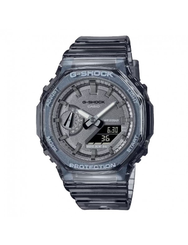 Reloj Casio G-Shock GMA-S2100SK-1AR para hombre. La esfera es de carbono y resina y mide 43mm. La pulsera es de resina con hebilla. Dispone de cronómetro, temporizador, 5 alarmas, luz led, calendario. hora mundial y formato 12/24 horas. Es sumergible a 20 ATM por lo que permite el buceo con botella. Garantía de tres años.
