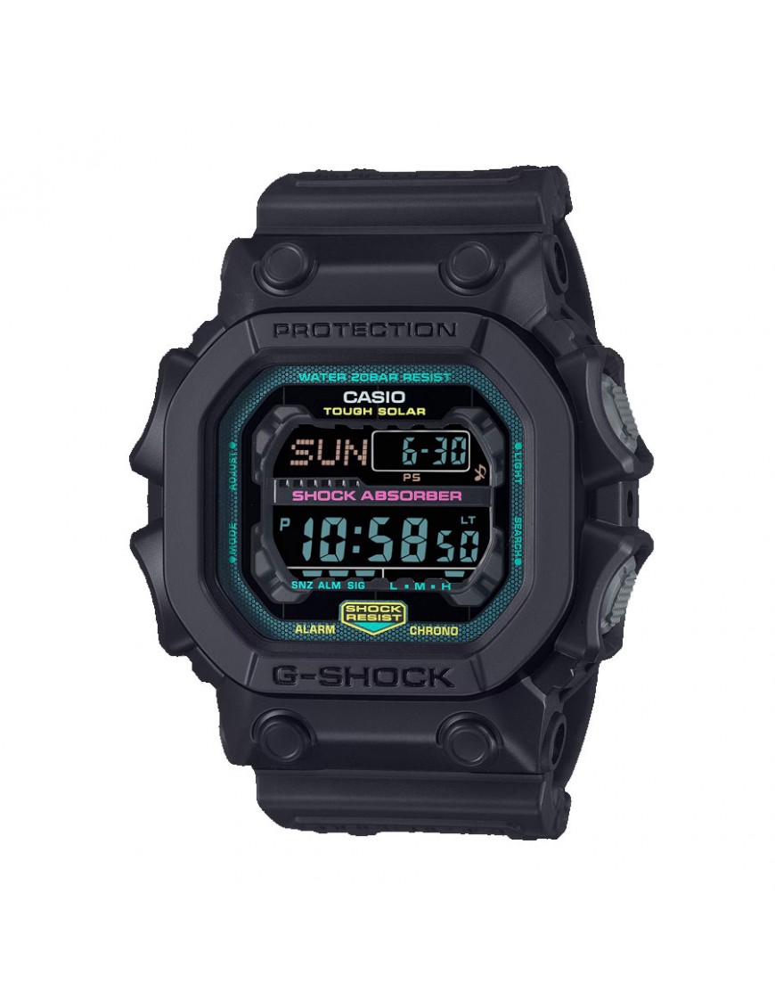 Reloj Casio G-Shock Origin para hombre GX-56MF-1ER. La caja que guarda el circuito es de resina y mide 54 mm de ancho. La pulsera es de resina con hebilla. Incluye modo de alimentación Tough Solar, hora mundial, cronómetro, temporizador, 5 alarmas diarias, luz led, calendario y modo 12/24 horas. Es sumergible a 20 ATM (buceo con botella) y cuenta con tres años de garantía.