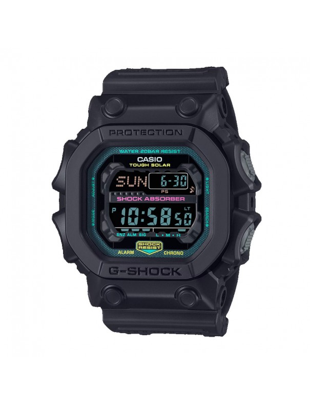 Reloj Casio G-Shock Origin para hombre GX-56MF-1ER. La caja que guarda el circuito es de resina y mide 54 mm de ancho. La pulsera es de resina con hebilla. Incluye modo de alimentación Tough Solar, hora mundial, cronómetro, temporizador, 5 alarmas diarias, luz led, calendario y modo 12/24 horas.
